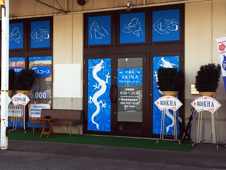 岐阜のバロー茜部店の中にオープンした、リラクゼーションサロン様の看板デザイン・看板施工・折り込みチラシ制作・案内カード、ゴム印の制作を担当させて頂きました。