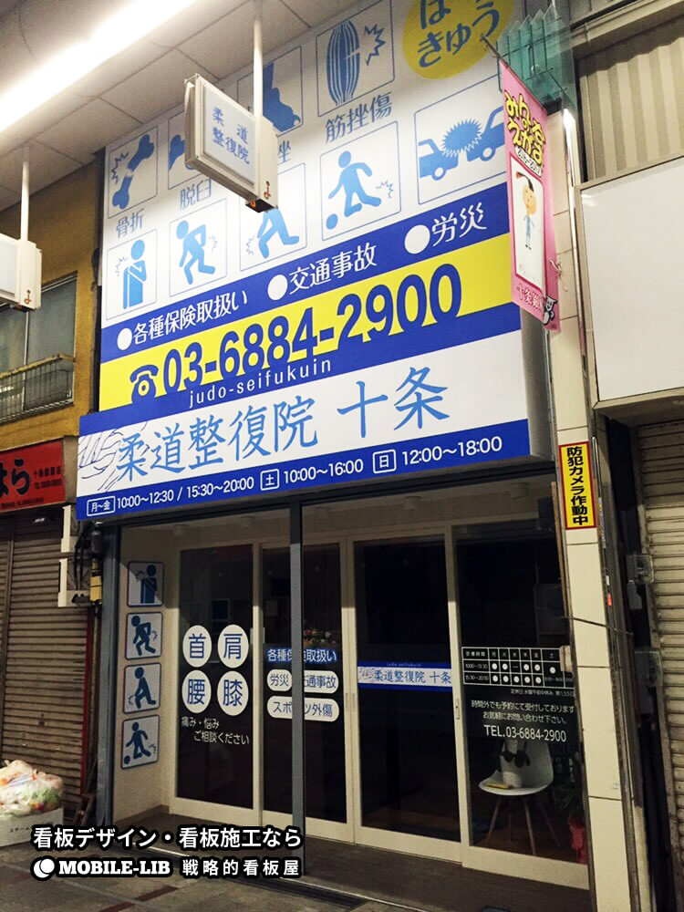 東京都十条で開店された整復院様の新規店舗看板の施工を担当させて頂きました。