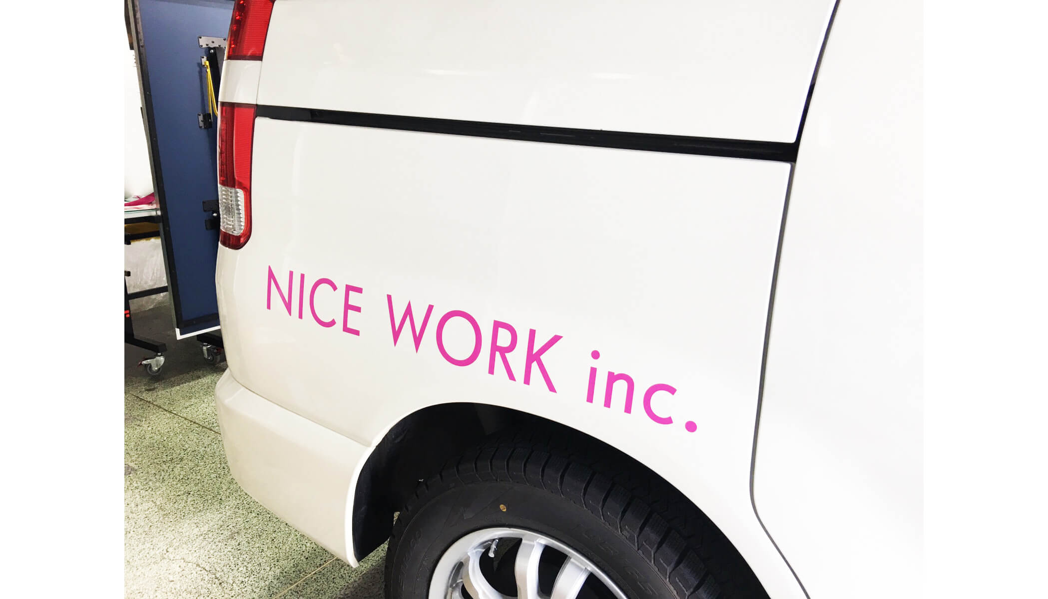会社に車を持ち込み頂ければ、弊社の看板工場内に車を入れて、その場で作業を致します。